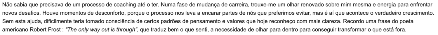 O que diz quem já fez o Processo de Coaching comigo: